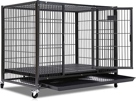 สุนัขขนาดใหญ่ หนักงานโลหะ Kennel และกล่องที่มีสี่ล้อในสีดําแข็ง